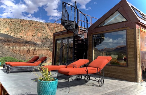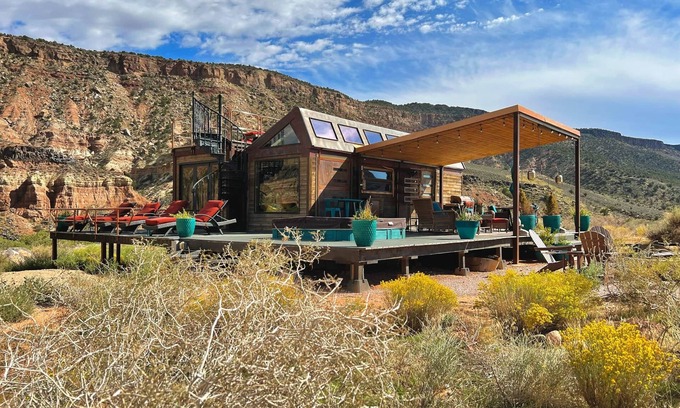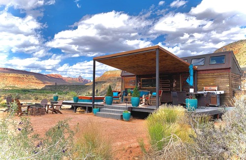Zions Tiny Oasis and the surrounding areas have breathtaking 360 views, and are quite secluded from the tourism and hustle and bustle of Springdale and the park. We do have 3 other tiny homes on the property which sit at two hundred - eight hundred feet away from each other. We also have a small neighborhood nearby, their homes are out of view , and down the hill/across the street. The oasis borders the west side of Zion Park; with many great hiking and biking trails nearby. As far as services, there is the Fort Zion gift shop and restaurant just 5 minutes away, and of course, the Park is only 15 minutes from the oasis. Springdale features many wonderful restaurants, shops, and entertainment venues. The best way to get around is definitely by car. There is no public transportation out our way, but everything is relatively close by car.