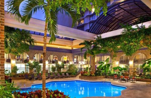 This Courtland Grand Hotel, Trademark Collection by Wyndham former Sheraton Atlanta is 0.9 mi from the Georgia Aquarium and 886 ft Peachtree Center MARTA Station. Features include free WiFi and 24-hour fitness center. Guests will also be 13 minutes' walk from Centennial Park. The garden courtyard pool is topped by a retractable glass atrium ceiling. Guests can also relax on lounge chairs or enjoy unlimited access to the 24-hour fitness center, which is equipped with treadmills,weight machines, free weights, yoga equipment, and step machines. Fandangles restaurant serves Southern Cuisine with a European twist. Collage also offers a casual and quick breakfast. Buffet Breakfast offered for a fee. A flat-screen cable TV, desk, and coffee-making facilities with Starbucks Coffee and Tazo Teas are provided in every Modern-style room at this Courtland Grand Hotel, Trademark Collection by Wyndham former Sheraton Atlanta. Some rooms are located poolside. Mercedes-Benz Stadium and Georgia World Congress Center are a 25 minute walk, while Piedmont Park is 2.2 mi away. Hartsfield–Jackson Atlanta International Airport is 12 minutes' drive from Courtland Grand Hotel, Trademark Collection by Wyndham former Sheraton Atlanta.