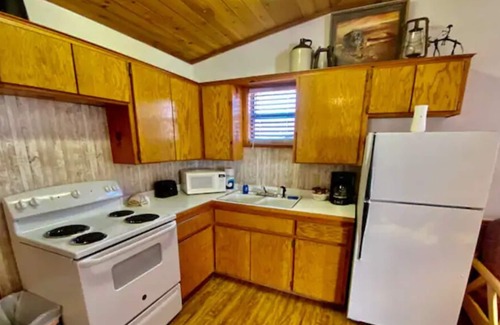 Cowboy Cabin #6 - Rocky Point Cabins has 2 Bedrooms , 1 Bathroom, and max occupancy of 4 people. The minimum rental for this property is 1 nights, but this can change depending on the season you plan on staying. Previous guests have given good rated it, and VRBO labeled it a top-rated Cabin because of the excellent services rendered by the owner or manager of this Cabin, and has consistently provided great experiences for their guests. Most families or guests that use it recommend it to their friends and some of them are repeat guests. Cabin has a friendly neighborhood, and the Sulphur has interesting places to visit. If you want to learn more about the Cabin in Sulphur, such as places to visit and things to do nearby, you can check below to learn more.