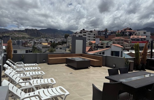 Discover this welcoming 1-bedroom gem in La Paz. This apartment offers tremendous views and a beautiful living room with a cozy sofa bed. Guests can enjoy amenities like WiFi, a washing machine, and heating during their stay. With 2 bathrooms available, digital passcode for a comfortable visit. Enjoy your time in La Paz at our apartment.