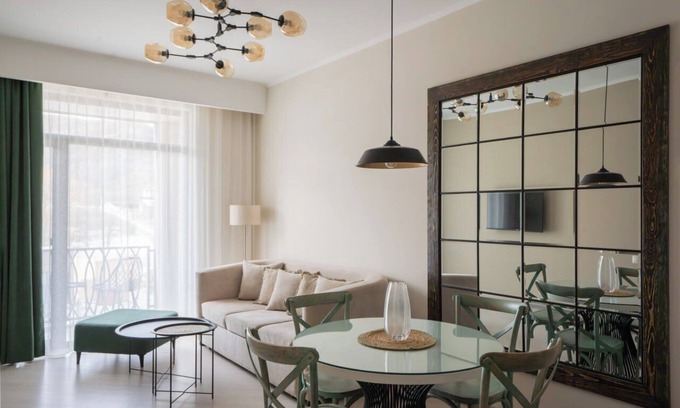 Our thoughtfully designed apartment is ideal for those seeking a distinctive and memorable long-term stay. This unique space offers a cozy yet modern atmosphere with every essential and necessary amenities included. It was created with great attention to detail to ensure maximum comfort. It is located in a modern apart-hotel, and the balcony has a beautiful view of the mountains and forest. Wi-Fi access is available throughout the apartment - ideal for remote work.