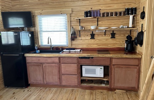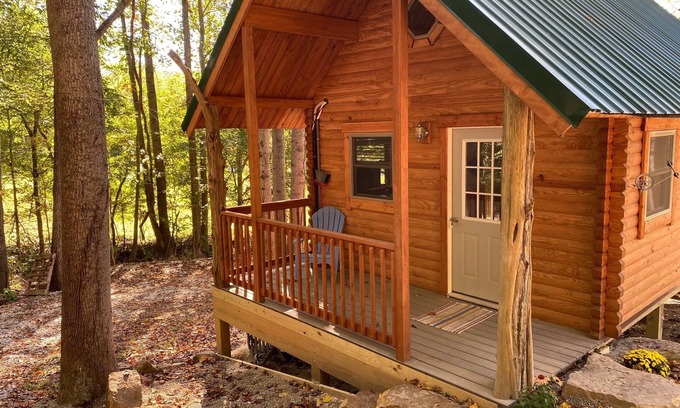 427 sq ft log cabin ( NOT handicapped accessible) , sleeps 4 (queen bed downstairs & 2 XL twin beds in the loft) FIBER 1 gig Internet . For those wanting a rustic/rugged type get away with privacy but want to be close to town. Located off ST RD 56 just a 7 minute drive to French Lick! Less than 2 miles to the Donald Ross Golf Course! Smoking allowed outdoors only! Pets are allowed but there is a $25 pet fee per stay for them. Property has access to 55 wooded acreas with trails to hike. Terrain is rugged and can be challenging for some. Bathroom with step in shower. Kitchenette features apartment size refrigerator, microwave, 2 burner induction cook top, waffle maker and egg cooker. Coffee pot uses K cups (8 assorted provided per stay). Out door park style charcoal grill for the grill masters. There is a small pond on the property close to the highway. You can fish if you like. It was stocked with Hybrid bluegill & catfish recently which are growing at a slow rate as the pond is spring fed and very cool year round. There is however 1 large mouth bass who is likely to become a legend in many a fish story in the future. If you do catch him and have him mounted please let me know so I can replace him. You can also spend hours animal watching as this property has a wide variety of wildlife to be seen, a feeder is setup a short way from the cabin to draw in wildlife.. Take a walk on the 1.5 miles of rugged trails on the property (two benches are installed for relaxation). Linens and a starter kit of 1 roll of paper towel, 2 rolls of toilet paper, soap/shampoo and disposable salt/pepper shakers are furnished. Cellular service is available inside/outside the cabin when you enable wi-fi calling. Otherwise cellular service can be reached at the top of the hill behind the cabin. High speed fiber internet will allow you to stream videos, music, tv and movies on the Roku TV. You can work from the cabin if you like on your laptop or tablet.