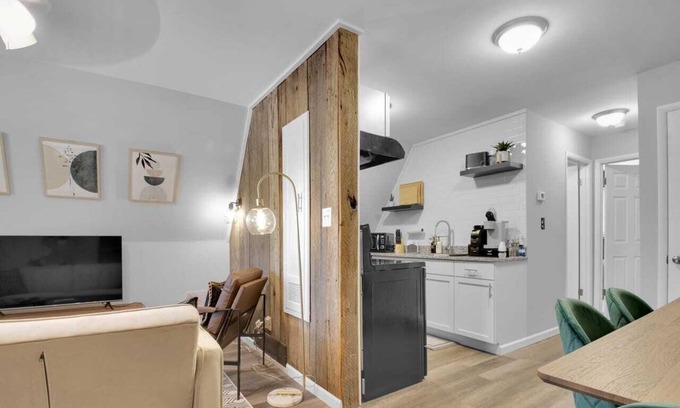 You will immediately feel at ease as you're welcomed by a comfortable sofa and a television. The perfect spot to relax and unwind after a long day of exploring the natural beauty of Northern Kentucky. The sitting area is conveniently located near the kitchen, providing easy access to refreshments and snacks while you kick back and enjoy a movie or your favorite TV show.