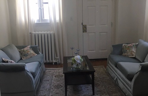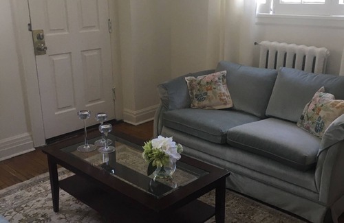 This Victorian-era apartment is perfectly suited for business trips, couples or couples with children. Located in Brockville's historic section, this apartment is ideally situated close to downtown, the Aquatarium, the Tall Ships Landing, the St. Lawrence River, and so forth. It's soaring 10' ceilings, warm wooden mouldings, and deep clawfoot soaker tub, make it the perfect choice for R&R. It includes a kitchen w/dining area, as well as a living room, washroom, and 2 cozy bedrooms. There is a fully equiped kitchen. Excellent WIFI network.