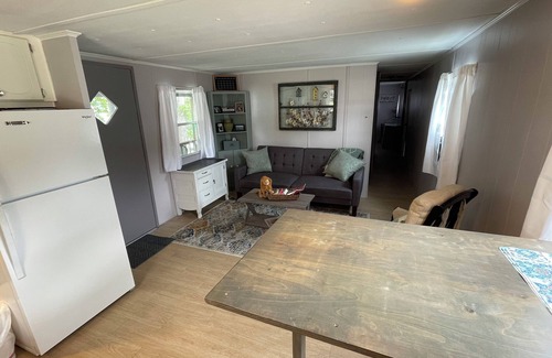 Hill Lake Resort is waiting for you at this 2-bedroom campground. Nestled in a serene setting, this nice property offers a soothing escape for guests. The cozy bedrooms feature 1 queen bed and 1 twin bed, ensuring a comfortable stay. With amenities like a hair dryer, AC, iron, coin laundry, and WiFi, your needs are well taken care of. The bathroom is equipped with a hair dryer for your convenience. Additionally, there is an additional space in the form of a living room with a sofa bed. Whether you're seeking relaxation or adventure, our property provides the perfect base for your getaway. We look forward to welcoming you to our place.