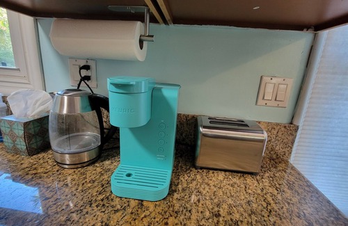 The bathroom was recently updated and features Bluetooth speaker so you can sing in the shower, rain showerhead after a day at the beach and cozy bathrobe when you get out.