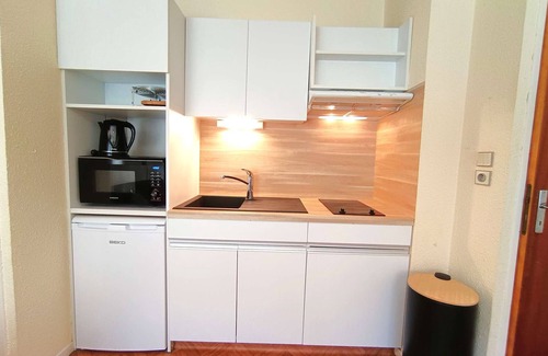 Kitchenette with combined oven-microwave, 2 ceramic hobs, electric coffee maker, toaster, electric kettle, raclette machine