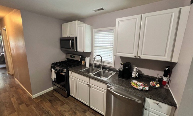 Entire house offers over 700 sq f and equipped with stylish comfortable furniture, smart TV, high speed internet 🛜 , stainless steel kitchen appliances, washer&dryer.