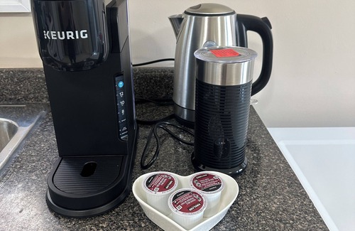 Private kitchen stocked with cookware and dining essentials