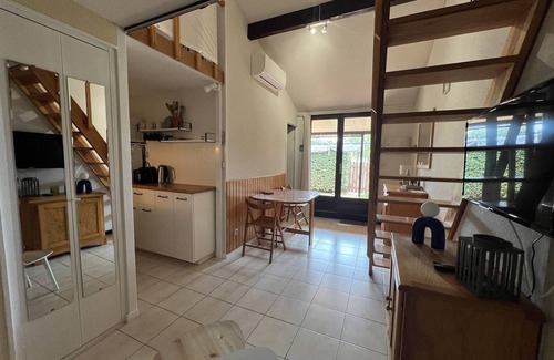 LA FRANQUI (11), LA FEUILLERAIE, In a quiet residential area. Furnished in very good condition. This house comprises a living room, a bedroom, a mezzanine, a bathroom with toilet, and a terrace.