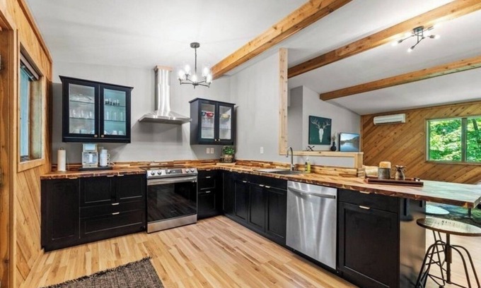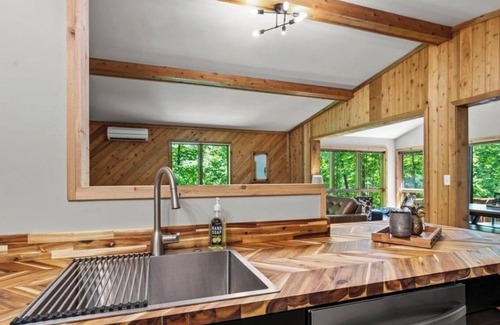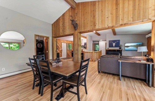 The property defines relaxation and can accommodate up to 8 people with 3 bedrooms (2 Queen beds and 1 King), and additional sleeping space in the basement (futon) . The comfortable Great Room has a gas fireplace, adjoins the dining area and open design kitchen, which is well-equipped for creating those tasty vacation meals. Amenities like AC (mini split units), WiFi, and a washing machine ensure a comfortable and enjoyable stay. The basement provides a wonderful recreation space for kids and adults alike. There is a large air hockey table that can also be converted to a ping pong table, and a large screen smart TV. All TV's are smart TV's, available for you to use your login for any streaming service you have.