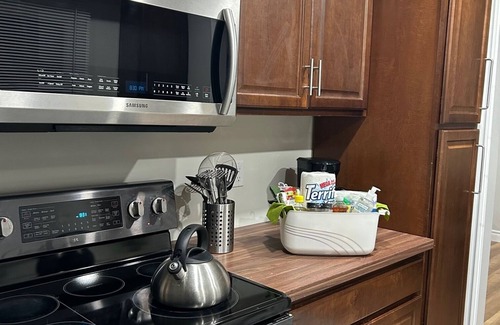 Clean and spacious 3 Beds, 3 Bath house. Family-friendly neighborhood with easy access to public transportation. Free parking on premises. Living room with 50" TV, overlooking fully fenced large back yard.