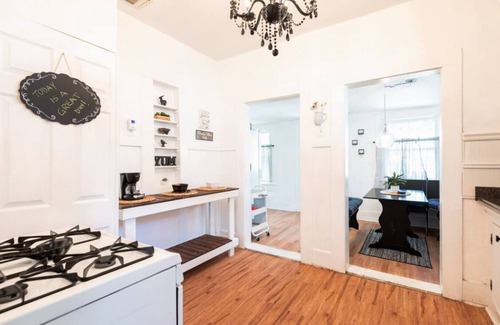A short walk near Woodlawn Lake and only a few minutes from downtown San Antonio, enjoy this cute & cozy house located in a historic neighborhood. With 2 queen beds and 2 twin beds, guests can relax. This property includes amenities like WiFi, central AC/Heat and a washing/dryer machine. Around the corner, you find a beautiful lake with free amenities: pool (summer only), basketball, tennis, work out area, jogging trail, fishing, baseball, ducks, fireworks, events, movies, etc. This older home is decorated with a minimalistic flare: clean, fresh linens & towels for every stay. It has a yard, grill & private parking.