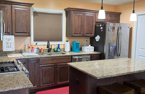 Nestled in the Fern Creek area of Louisville, this delightful house is a beautiful and soothing retreat for guests. With 3 cozy bedrooms, a washing machine, AC, WiFi, heating, fireplace, and a fenced in yard this marvelous property offers everything you need for a comfortable stay for you and your furry friends. Relax in one of our two outdoor porch areas while cooking out on the grill. Located minutes away from restaurants and shopping with Downtown Louisville and Churchill Downs a short 20 minute drive away. Immerse yourself in the magic of Louisville at our charming house.