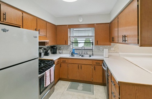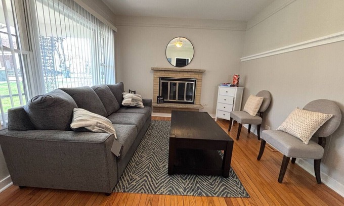 Charming 3 bed, 1 bath 2 story home with beautiful hardwood floors, large backyard, wood burning fireplace and 2 car garage! Just a five minute walk to downtown Libertyville which boasts many different shops and restaurants. Close to everything! Home features One King, 1 Queen, 1 Twin XL over Queen bunk bed and a Queen pull out couch. Sleeps 9 comfortably.