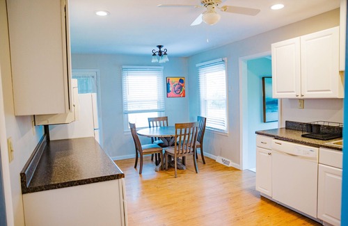 Everything in the house is brand new.. Brand new washer & dryer are located in the sunroom. A brand new 50" Flat Screen TV is in the new entertainment center(we provide cable and Netflix). Brand new: refrigerator(beer fridge also located in garage, not new), Pots, pans, silverware, plates, glasses, wine glasses, champagne glasses, and basically everything needed for cooking/eating are provided. Kitchen necessities like a coffee maker, bean blender, blender, toaster, are all provided. There is a enclosed garage for one vehicle, and parking for 6 cars located on the left and front side of the house in the driveway. Garbage cans are provided throughout the house and there is a 45 gallon garbage can in the garage. If our guests want, we will dump the big one for you when/if you need it during your stay.