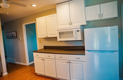 The farm house beautiful furnishings inside are just as lovely as the scenic views outside, and the sensation of calm & peace seep from the floor boards. In Spring 2022, it underwent a complete three month renovation that molded it into the beautiful farmhouse it is today. Many resources were spent renovating the cottage until it transformed into a very classy, yet rustic home. Guests will absolutely love the location, the sleep they get every night (we spent a kings ransom on 3 brand new Ghost Air Mattresses), and the setup of the farm house. Interior Designers and Professionals designed and hand picked the layout and furniture used in each room. The Kitchen & Living Room both have plenty of room for a large family to cook, eat, and socialize comfortably. Brand new chairs and a couch sit comfortably in the Living Room and the Kitchen also has a large table and chairs and could easily double as an excellent workplace area. The cottage has 3 bedrooms and one full sized bathroom. The master bedroom has a queen sized mattress, and a full sized mattress is in each of the other two guest bedrooms. There is also a sunroom attached to the Kitchen with a comfortable couch to read a book on, and comes complete w a brand new washer and dryer.