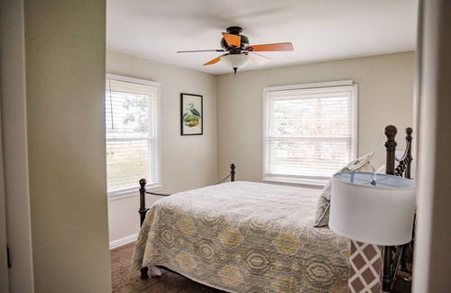 Originally built in the 1930's, the farm house served as our beloved farm manager's home from the Great Depression till 2000. Outside, it sits on a beautiful one acre lot at the front of the farm and is surrounded by nature's beauty on all sides: a young fruit tree orchard to the left, a tree nursery & family farm behind it and to the right, and a large lake visible from the front porch. All providing beautiful scenic views. Two chairs and a table are provided on the front porch, and four chairs and a circle table are provided on the front lawn for sunsets, conversations, drinks, eating dinner outside, a combination of all of the above, and about any good reason to hang out outside .Hiking, walking, and running are all allowed on our 300 acre working family farm. A wonderful day trip for the out door minded is a hike to the back; walking down the old logging road and visiting sites such as the waterfall and/or Harrods Creek and having lunch. The back of the farm is heavily wooded and full of wildlife. Expect to see Deer, Wild Turkeys, Coyotes, Groundhogs, Rabbits, Raccoons, Possums, Box Turtles and much more!