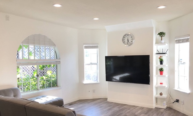 This West San Jose townhouse is ideal for business travelers, remote workers, and families. It sits in the heart of silicon valley and close to eBay, Apple Park, Netflix and the Harker School. Within a 5-minute drive, you get easy access to Safeway, Trader Joe’s, Target, fitness center, movie theater, and 100+ restaurants/fashion stores. Remodeled with new wood floors, recessed lighting, stainless steel appliances and a Samsung 65-inch 4K TV, the house offers a contemporary touch and ultimate comfort.
