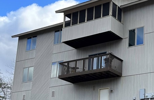 Our condo has a 2BR apartment with a full kitchen. There is also another identical model downstairs that you can get a separate key for entry. Both have a king bedroom, a room with two twins and a pull out sofa bed in the living rooms. The only difference between the two floors is the downstairs does not have a stove. Instead of a stove it has a hot plate, plug in burners and a propane grill on the deck. The deck on the top unit is enclosed while the one on the bottom is open because of the grill. There is a step hallway between each unit that includes a shared washer and dryer.
