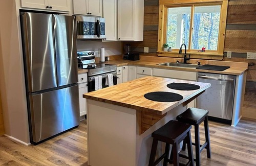 Relax with the whole family at this peaceful place to stay. Whether you want to feel like your in the middle of the woods, or take the 4 mile drive to town for shopping and restaurants, this cabin is the perfect getaway.