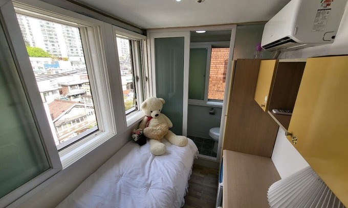 The rooms are cozy and not fancy but cost-effectiveness very good and the downtown (Myeong-dong&Gangnam)is close. It's suitable for people who travel for a long time. At a low cost. Private bathroom in room. Kitchen and laundry place are shared