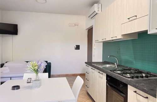 The Zeus apartment in the brand new residence "il Pantheon" welcomes you just 50 meters from the seashore to offer you a relaxing and regenerating holiday. Featuring a modern and comfortable environment, you will find all the necessary amenities for a pleasant stay. The apartment is equipped with air conditioning to ensure maximum comfort even on the hottest days. The kitchen is fully equipped with all necessary appliances and utensils to prepare your favorite meals which you can enjoy on the veranda. Furthermore, the residence offers its guests a reserved parking space and an outdoor shower. The apartment in the residence "Il Pantheon" is the perfect choice for an unforgettable holiday.