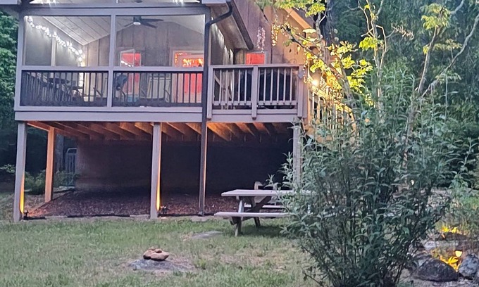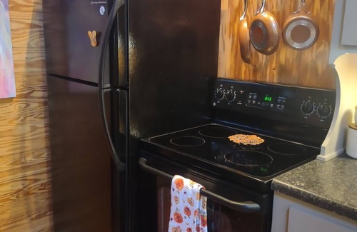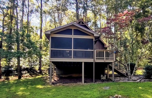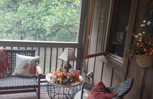 Poppy's Cabin at Stoney Creek is a special place where you can relax and rejuvenate. This one bedroom cabin with a loft is perfect for a getaway. Located at the foot of the Blue Ridge Parkway you can sit on the large screened in front porch and enjoy your coffee while listening to the creek and enjoying the scenery. The kitchen is fully equipped for cooking. The cozy living room features an electric fireplace, T.V, recliner and couch. The bedroom is quaint and cozy and adjoins the back deck with a screened in porch. The bedroom also adjoins the bathroom where you can take a shower or enjoy relaxing in the soaker tub with your favorite beverage. The loft features two futons that can be used for additional guests. The loft does have loft steps to get up there so please use caution on them. The cabin also features an outside solo stove, Blackstone grill, and picnic table. Walk across the gravel road and enjoy Stoney Creek as it flows off of the mountain. .Wildlife is abundant at the cabin so please use good judgement. We look forward to having you come stay at Poppy's Cabin at Stoney Creek.