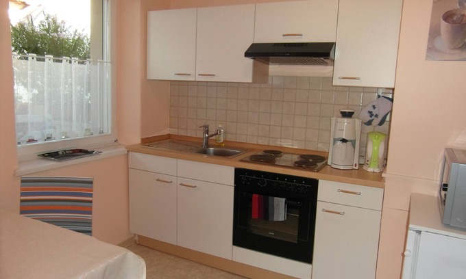 The apartment has a bedroom (2 people). A baby bed is available. Another person can sleep on a comfortable fold-away bed in the living room and / or on the sofa bed. The apartment is suitable for up to 3 people.