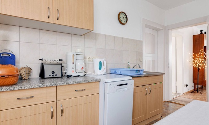 storage, tumble dryer(shared with the owner , paid), washing machine(shared with the owner , paid), heating(central), terrace(shared with the owner , roofed, 10 m2), garden(shared with the owner , partially fenced, 30 m2), garden furniture, BBQ, 2x parking, children's bed, ironing board, iron, Sunscreen