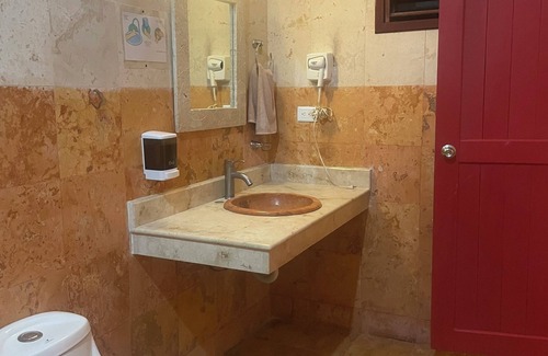 Your home away from home in Holbox with 1 bedroom. This amazing apartment features a cozy bedroom with a comfortable king bed, perfect for a wonderful night's sleep. The bathroom comes equipped with a hair dryer for your convenience. Stay cool with AC and stay connected with WiFi during your stay. Enjoy your time in Holbox at our apartment.