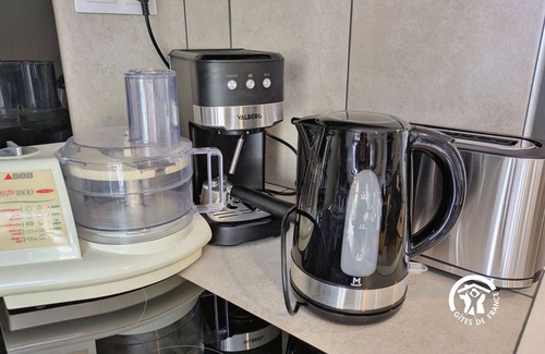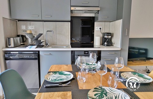Relaxation & gastronomy: Local markets (700 m) - Restaurants (only 500 m) Accommodation on the 1st floor, access by stairs (no elevator): Entrance - Living room, dining room, equipped kitchen (16m²): sink, 4-burner stovetop, extractor fan, dishwasher, oven, refrigerator with freezer compartment, microwave, kettle, toaster, food processor, coffee machine - Bedroom 1 (11.8m²): one 160*200 bed, wardrobe with shelves and hanging space, desk and chair, RJ45 socket - Bedroom 2 (9m²): one 140*190 bed, wardrobe with shelves and hanging space, desk and chair, RJ45 socket - Bathroom (4.9m²): sink, shower, hairdryer, and washer-dryer - separate toilet.