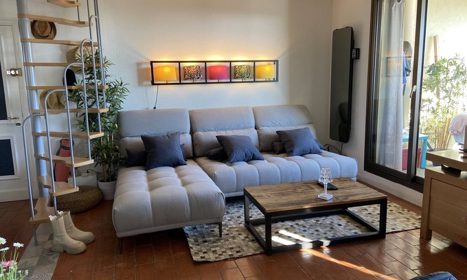 Cozy apartment in secure domain is located in Villeneuve-Loubet. Cozy apartment in secure domain provides accommodation, featuring Fireplace/Heating, Child Friendly, Internet, among other amenities. This Apartment features Fireplace/Heating, Child Friendly, Internet, to make your stay a comfortable one.