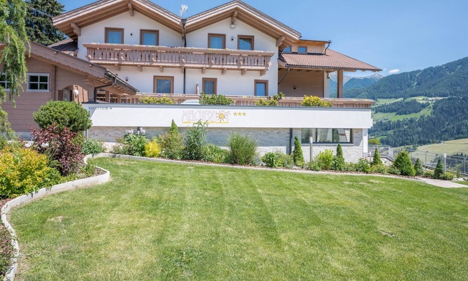 Situated in the picturesque Ridanna and Racines (Ridnaun and Ratschings) Valley of South Tyrol, the apartment Maiglöckchen is part of the Residence Melcherhof. Surrounded by the fascinating mountain panorama of the Dolomite Alps, the Melcherhof is the perfect resort for skiing or hiking holidays. The child-friendly apartment consists of a living room with a sofa bed, a well-equipped kitchen with a dishwasher, one bedroom as well as one bathroom and can therefore accommodate 4 people. Additional amenities include Wi-Fi, satellite and cable television, a child's bed and a highchair. Start your day with coffee on your balcony while marveling at the mountain peaks. The spacious shared terrace in the open outdoor area invites you to have breakfast or to bathe in the sun. Indoors, you will find a small, yet cozy sauna area with a Finnish sauna, a steam bath, an infrared cabin, a jacuzzi, sensation showers, a heating bench, a tanning bed and a relaxation room. The Racines (Ratschings) ski lift is only a 16-minute drive from the property (12 km) and the popular ski area of Ladurns (Ladurno) is 19 km (22-minute drive) away. In 11 minutes (7.8 km), you can drive to the town of Sterzing (Vipiteno), where you can find supermarkets, shops, restaurants cafés, but there is a supermarket only 1.7 km (4-minute drive) from the apartment. If you want to go hiking, you will certainly enjoy the 60 km border-crossing trail network between Italian South Tyrol and Austrian North Tyrol. Guests of the Melcherhof can enjoy the Balneum swimming baths and the sauna in Sterzing free of charge for up to 3 hours. Parking spaces are available on the property. Bed linens and towels are included in the price. Pets are not allowed. Breakfast is available for an extra fee. In winter, the spa area is open on Mondays, Wednesdays and Fridays. During the rest of the year, the sauna can be accessed upon request (for a fee).