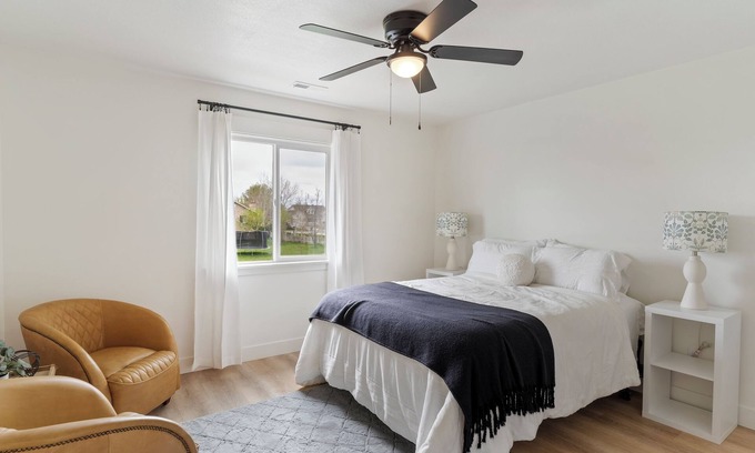 This charming private above-garage apartment offers a perfect blend of comfort and convenience. With two spacious bedrooms and one well-appointed bathroom, its an ideal space for individuals or small families. The heart of the apartment is its expansive kitchen, featuring a huge 8-foot by 8-foot island, providing plenty of space for meal prep, dining, or socializing. The kitchen is fully equipped with modern appliances, including a full-size washer and dryer for added convenience.