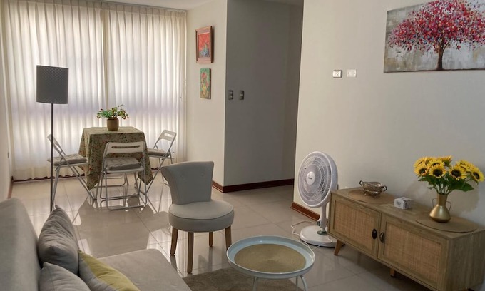 Nestled in Chiclayo, this 2-bedroom, 2-bathroom vacation home brings it all within your reach. Fans of nature and the outdoors will love being 23 minutes by car from Pimentel Beach and 6 minutes from Cerro del Panteon. Make short work of the 2-minute drive to Paseo de las Musas or the 2-minute drive to Lambayeque.