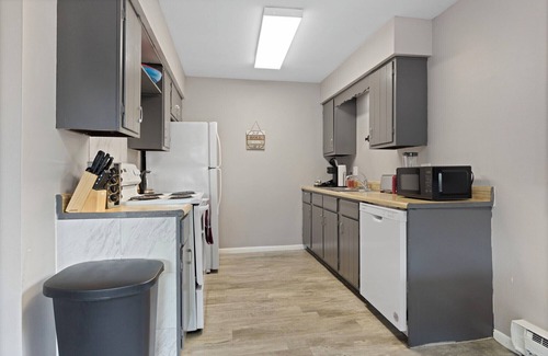 Kitchen - Fully stocked with basic cooking and baking needs. Dishes, Bowls, Coffee cups and glasses all for set of 8. Silverware set of 8.