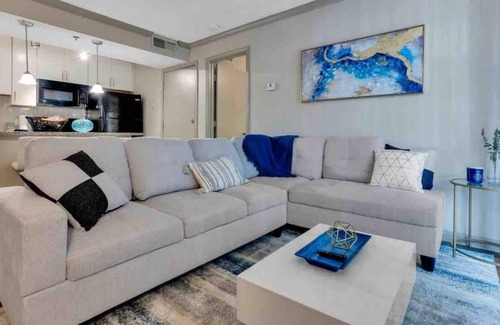 Gorgeous kitchen with spacious cabinets, sleek counters, black appliances. Elegant bathroom with tile shower and floor. Two flat screen smart TVs and Washer and dryer in unit.