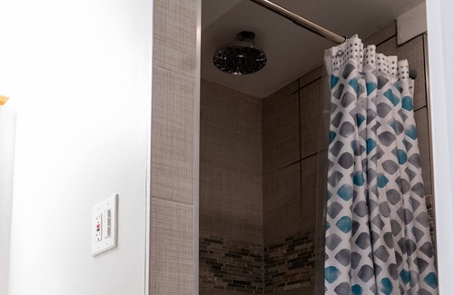 You have access to a private full bathroom that also includes a hair dryer, clothes steamer, iron, ironing board, and a clothes rack.