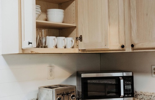Cook up your favorites in the fully stocked kitchen, equipped with pots, pans, blender, coffee machine, and all the essentials. The dining room, just off the kitchen, offers a warm, open space for shared meals and laughter.
