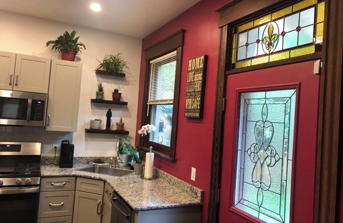 Very nice, brick home, built in 1940 in Latonia/Covington. Lots of natural lighting, fenced in back yard, privacy fence, on a quiet, dead end street, walking distance to several cafe’s, churches, and a 2 min drive from golf course. Fully furnished, laundry facilities , on street parking. Back patio has a table, chairs, umbrella and a gas grill. Heavily wooded area, near a river, some wild life. A 15 min drive to Reds and Bengals stadiums, Hard Rock Casino, Riverdowns, Turfway Park, Riverbend Music Center, Belterra, Newport on the Levee, Mainstrasse Village. The Ark Encounter is about a 40 min drive, and the Creation Museum is a 25 min drive. Kings Island takes 45 minutes.