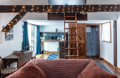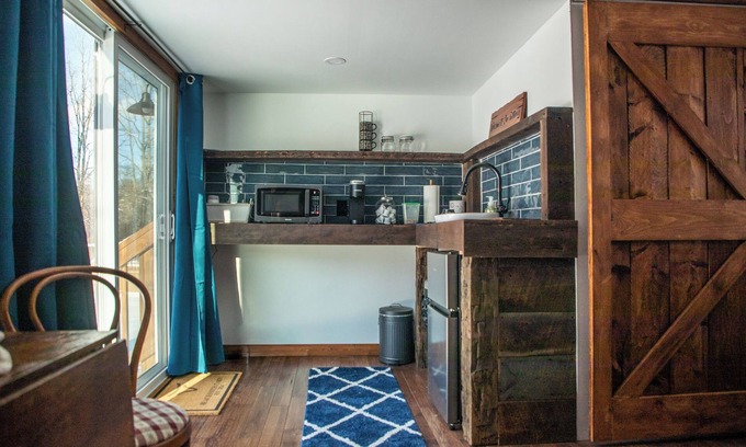 Escape to this charming, renovated 100-year-old cabin, perfect for a cozy retreat. Nestled by a tranquil pond with a fire pit, it offers rustic charm and modern comfort. Inside, enjoy a snug loft with plush bedding, a kitchenette equipped with a microwave, mini fridge, Keurig coffee maker, and kettle. The outdoor space invites relaxation, stargazing, and fireside moments. A peaceful escape with natural beauty and simple comforts awaits near Montgomery’s highlights —book your stay today!