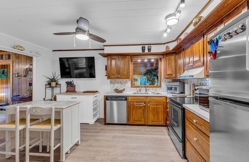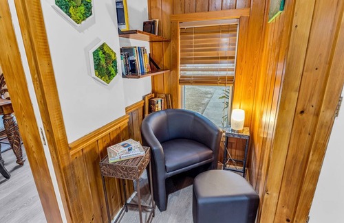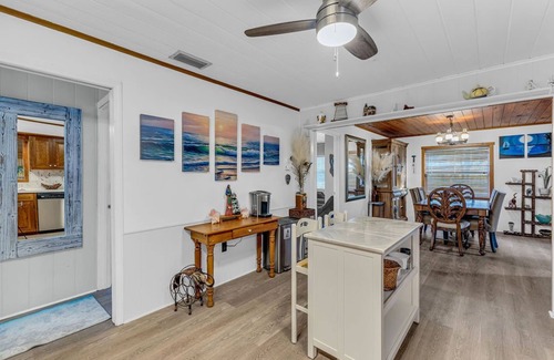 Charming 2-bed, 1-bath house in a tranquil private area. Recently renovated bathroom adds a touch of modern comfort. Warmly decorated, resembling a cozy cabin. Accommodates up to 5 people. Conveniently situated with the occasional distant rooster crowing in the distance, enhancing the peaceful atmosphere. Ideal for a serene getaway.