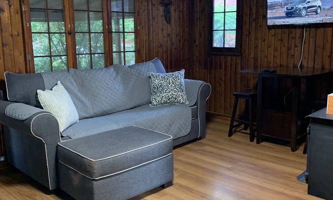 Original 1940’s cedar log cabin. One bedroom with Queen bed, 2 full size sofa beds.