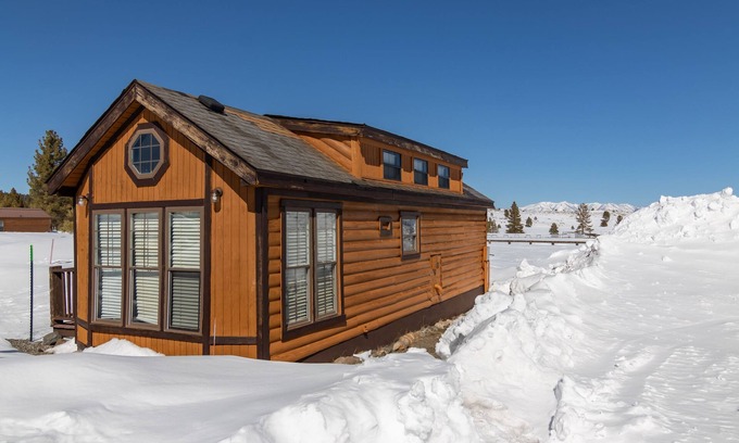 The location is one of a kind lodging opportunity in Mammoth Lakes, capturing the western feel and mining heritage of the area. With 360-degree unobstructed mountain views, the property provides solitude while being located just on the edge of town and within walking distance to nearby restaurants and shopping. Arguably the single best location in Mammoth Lakes for stargazing, sunrises, and sunsets. Located on Forest Service land the property is near Sherwin Creek and the historical Hayde Cabin Museum. The site and surrounding areas were used in the filming of Steve McQueen's "Nevada Smith." Nestled at the base of the Sherwin Mountain range with views of Mammoth Mountain and the White Mountains, there is nothing like it. The cabins are considered "tiny houses" and is 375 square feet. Nicely equipped with 1 bedroom, a full kitchen and a full bathroom, and a smart television allowing you to stream with your favorite apps.