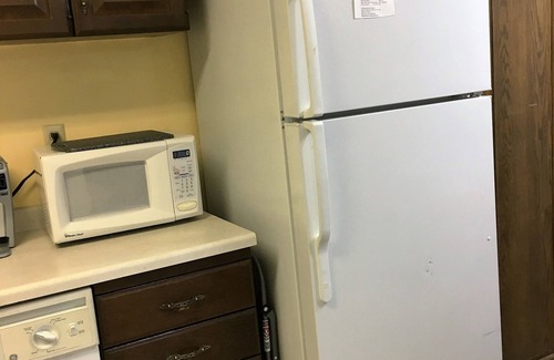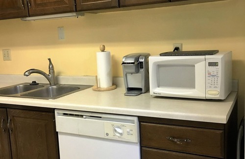 The kitchen has all of the necessary equipment for family meals. There are pots, pans, cookware, cutting boards, coffee maker, salt, sugar, pepper, silverware, plates, dishes, cups, etc. The kitchen has an electric stove/oven, crockpot, toaster, blender, microwave, fridge and Keurig.