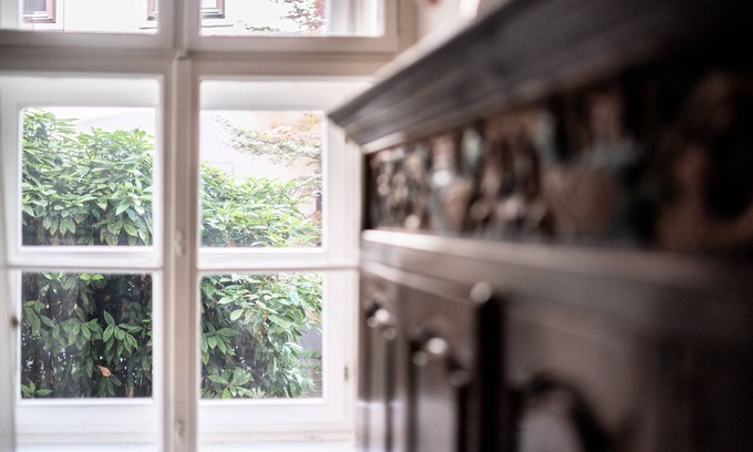 The apartment is on the ground floor of an old house. Despite the very central location, the apartment is absolutely quiet, as the windows look into the inner courtyard.