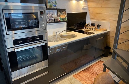 On the garden level, a large room accessible from the outside with a spa area with a pleasant jacuzzi. The room is also designed for storing skis, shoes, bikes, etc. It also has a shoe heater. This level also houses the laundry room, with washing machine and dryer, as well as a second refrigerator with freezer for more comfort during your stay. In good weather, you can enjoy the garden with a picnic table and an outdoor lounge, as well as a gas barbecue for grilling.
