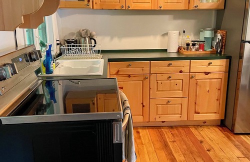 The kitchen is fully-stocked, except we unfortunately do not have a dishwasher. All other LG appliances are brand-new in 2024. The cottage is furnished with key necessities needed to cook delicious meals with friends and family. Complementary spice rack, oil and vinegar is provided. Please help yourself.