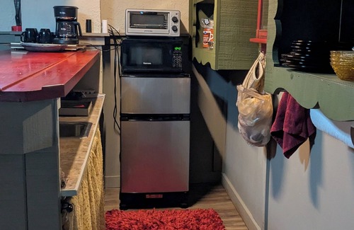 Enjoy a cozy stay in a mid century boho retreat in a classic Tutor home. Located in Pleasant Ridge, this is a one bedroom efficiency apartment with a full bathroom (shower, no tub), wet bar, mini fridge, and microwave, toaster/oven/air fryer.
